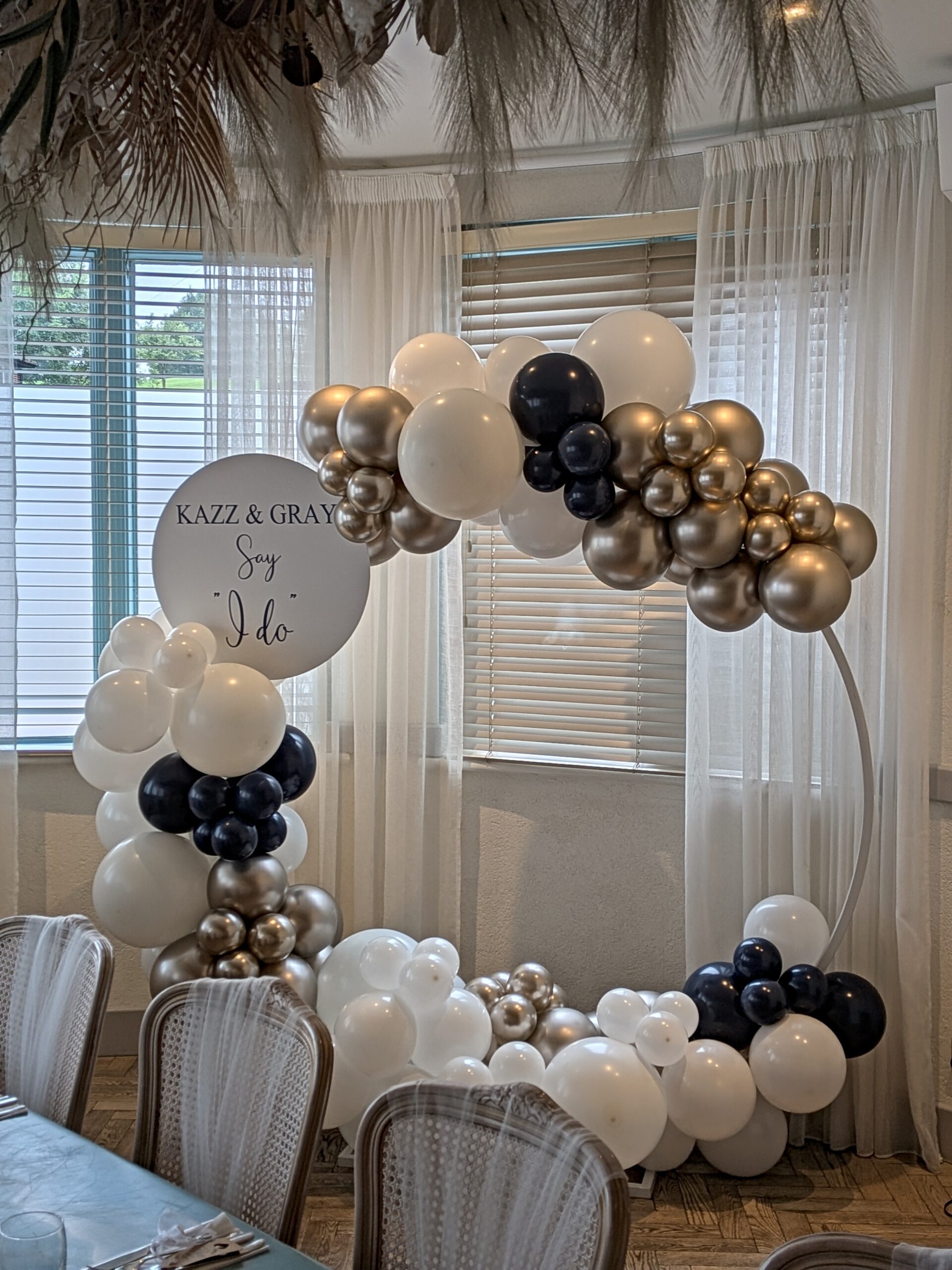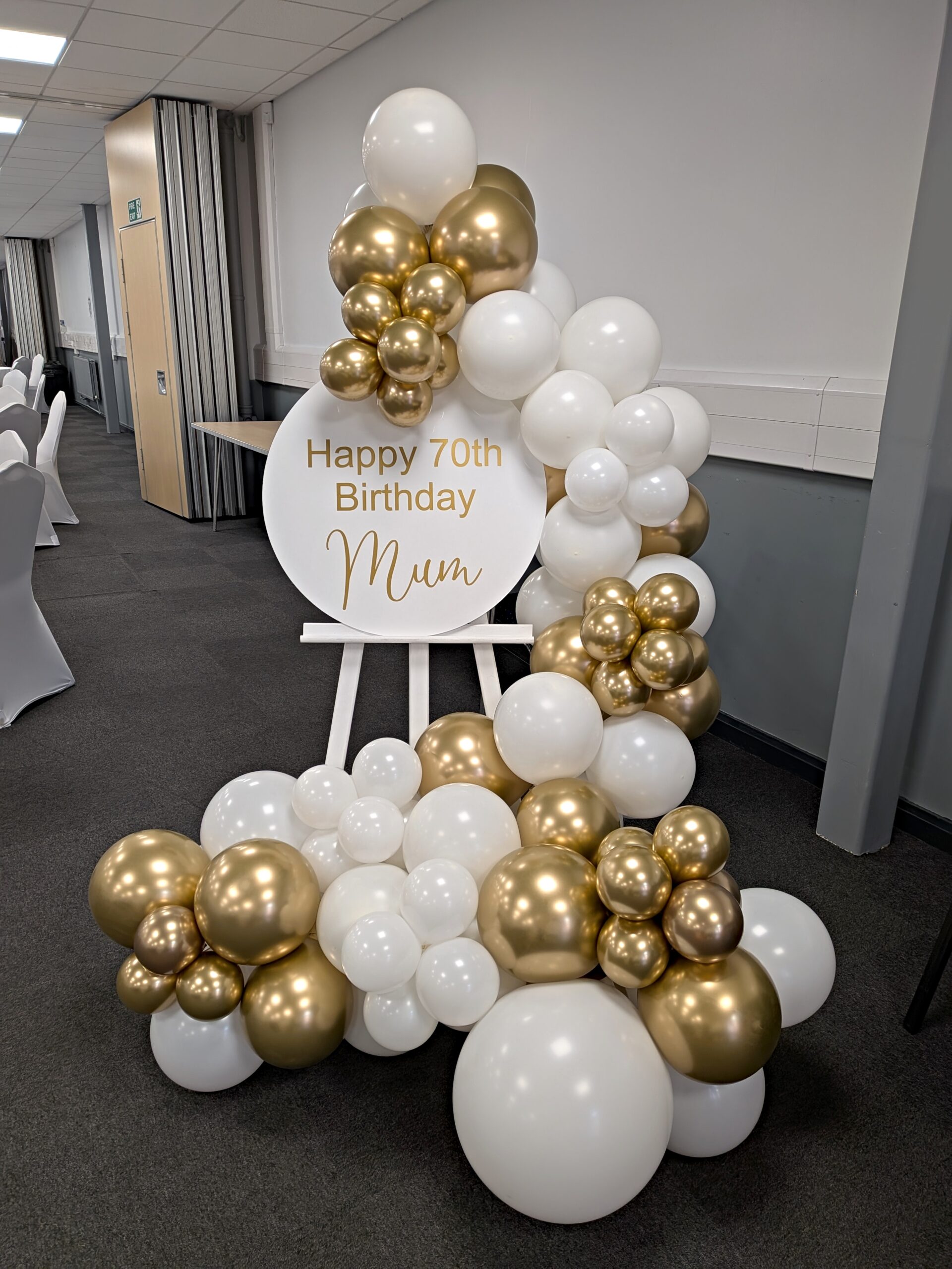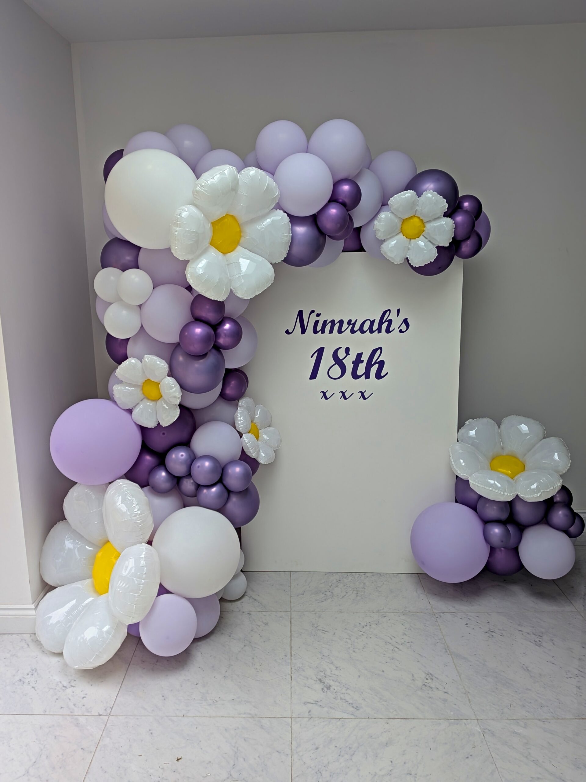 - Outdoor balloon half arch installed at the venue entrance for birthday party